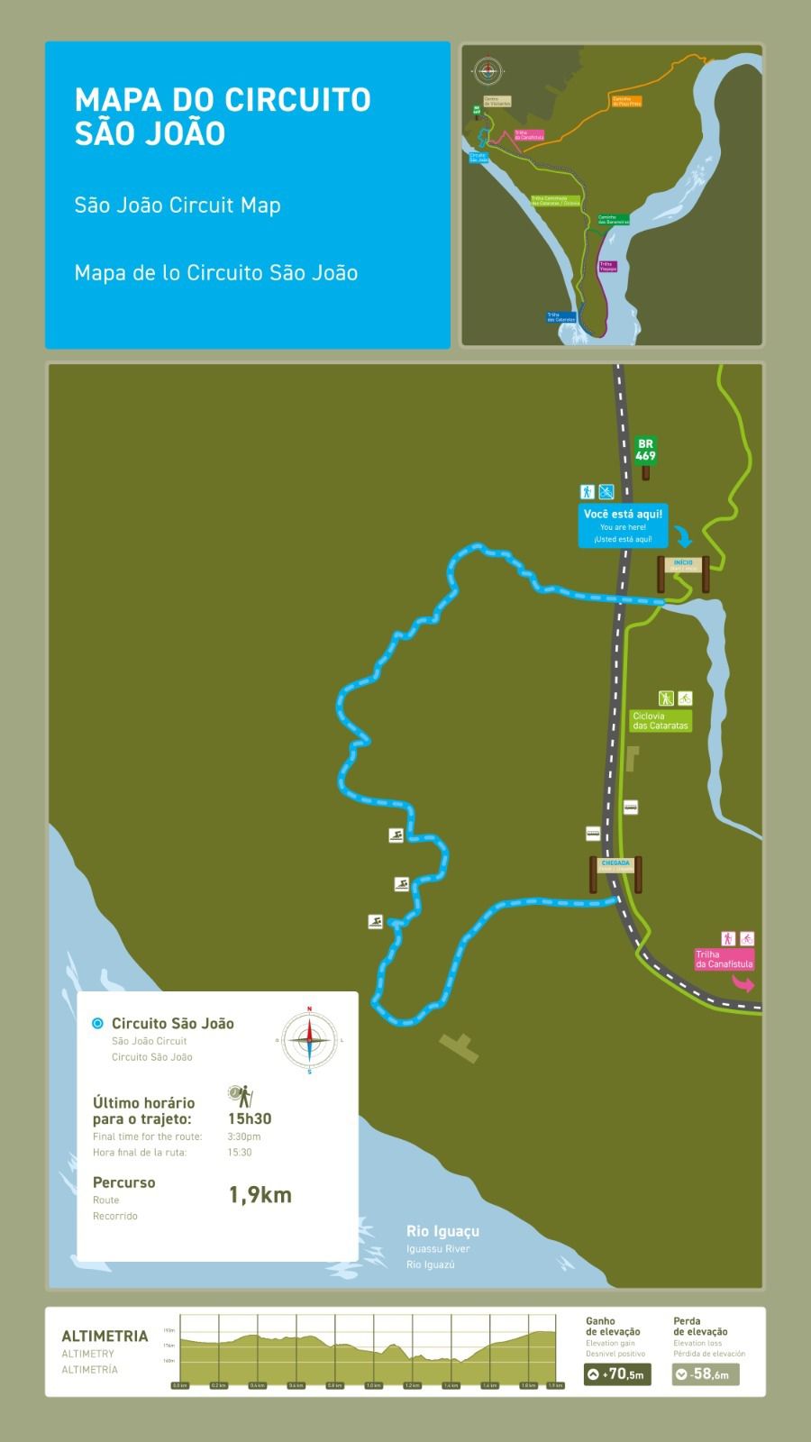 O Circuito São João, novo atrativo do Parque Nacional do Iguaçu, é uma trilha de 1,9 km que oferece uma experiência inédita de imersão na Mata Atlântica e banho de cachoeira, conectando natureza, lazer e história. A novidade, incluída no ingresso regular do parque, destaca-se por integrar pontos de banho em rio e cachoeira, além de apresentar a história da primeira hidrelétrica de Foz do Iguaçu: a Usina São João, atualmente em revitalização e prevista para reabertura ao público em 2025.
