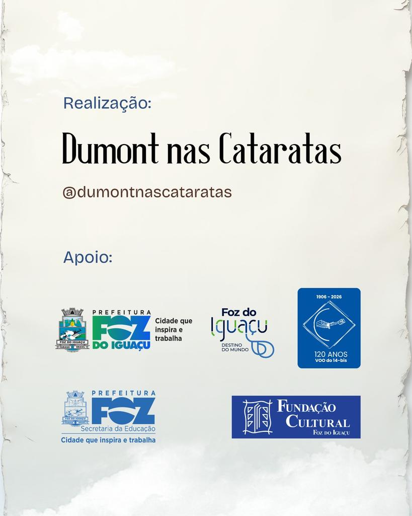 Essa é uma iniciativa do projeto Dumont nas Cataratas, em parceria com a Secretaria Municipal de Turismo de Foz do Iguaçu (SMTU), Fundação Cultural, Secretaria Municipal de Educação (SMED, Associação Cultural dos Artistas Plásticos de Foz do Iguaçu (ACAPI) e Revista 100Fronteiras.