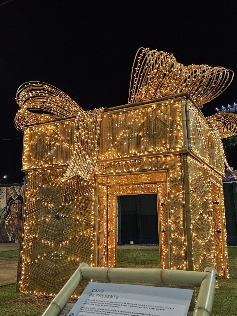 A programação natalina promovida pela Prefeitura e pela Fundação Cultural traz o Natal Luz, Águas e Magia, que aposta em decoração feita com peças em bambu, um material altamente renovável e de baixo impacto ambiental. As peças, trabalhadas com técnicas artesanais, trazem elementos tradicionais do Natal e também referências à fauna e à flora de Foz do Iguaçu, reforçando a identidade natural e sustentável da cidade.
